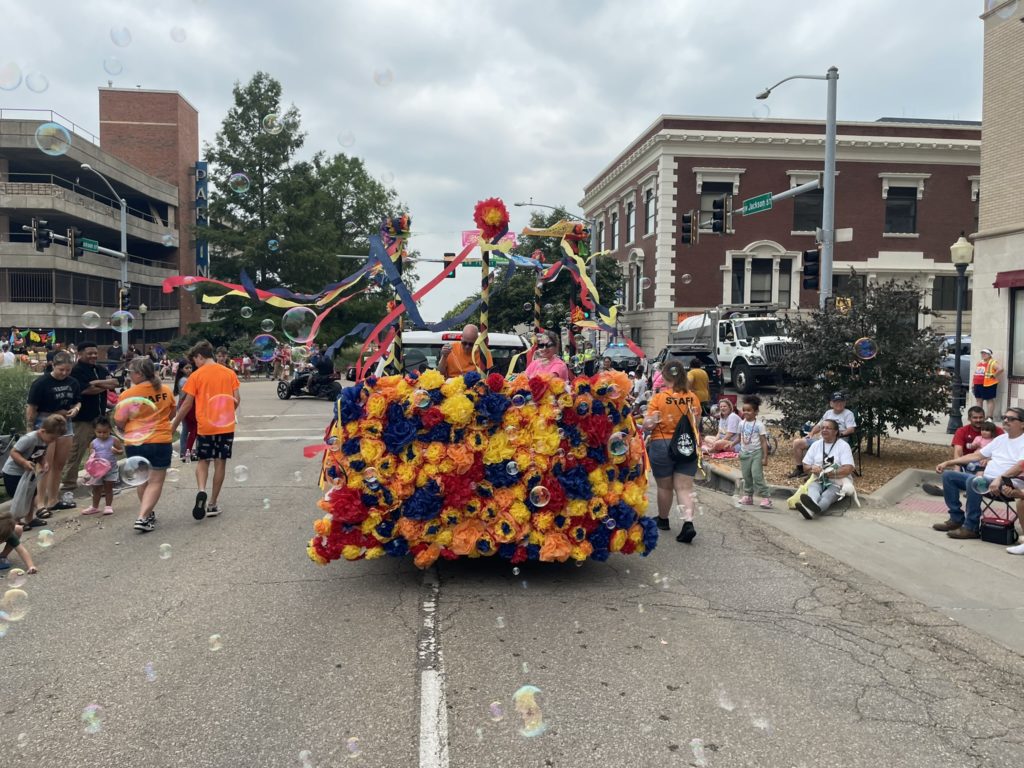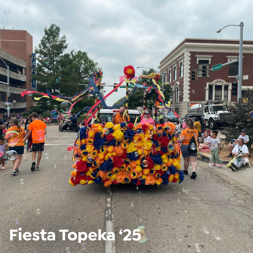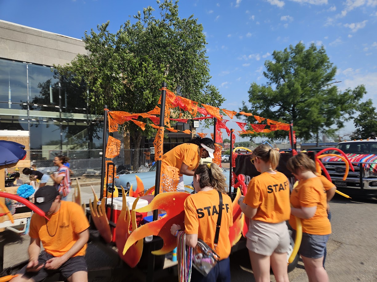 Prairie Band Team Members decorating float at Fiesta Topeka 2024