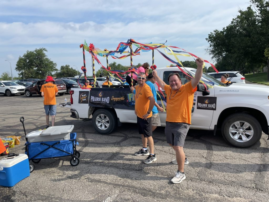 Prairie Band Casino & Resort team members at the 2024 Topeka Fiesta! Team members volunteered their time at the Topeka Fiesta, raised donations of nonperishable food items and toiletries, and also got to partake in the parade!