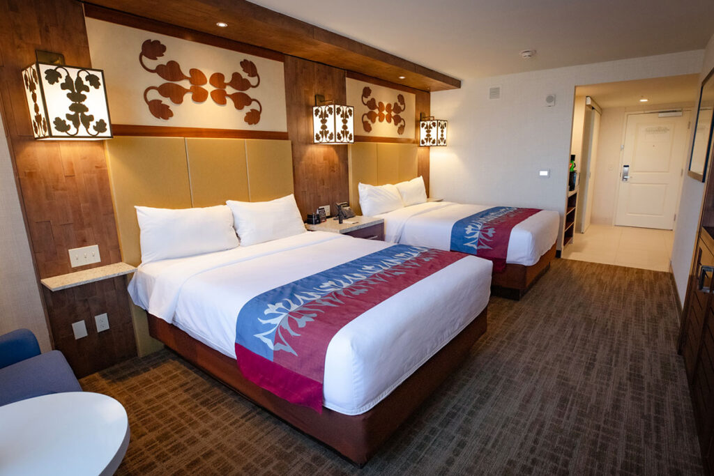 The Sunrise Tower Double Queen rooms feature two queen size beds, a HD TV, cable, free WiFi, and bathrooms with walk-in showers. Balcony option available.