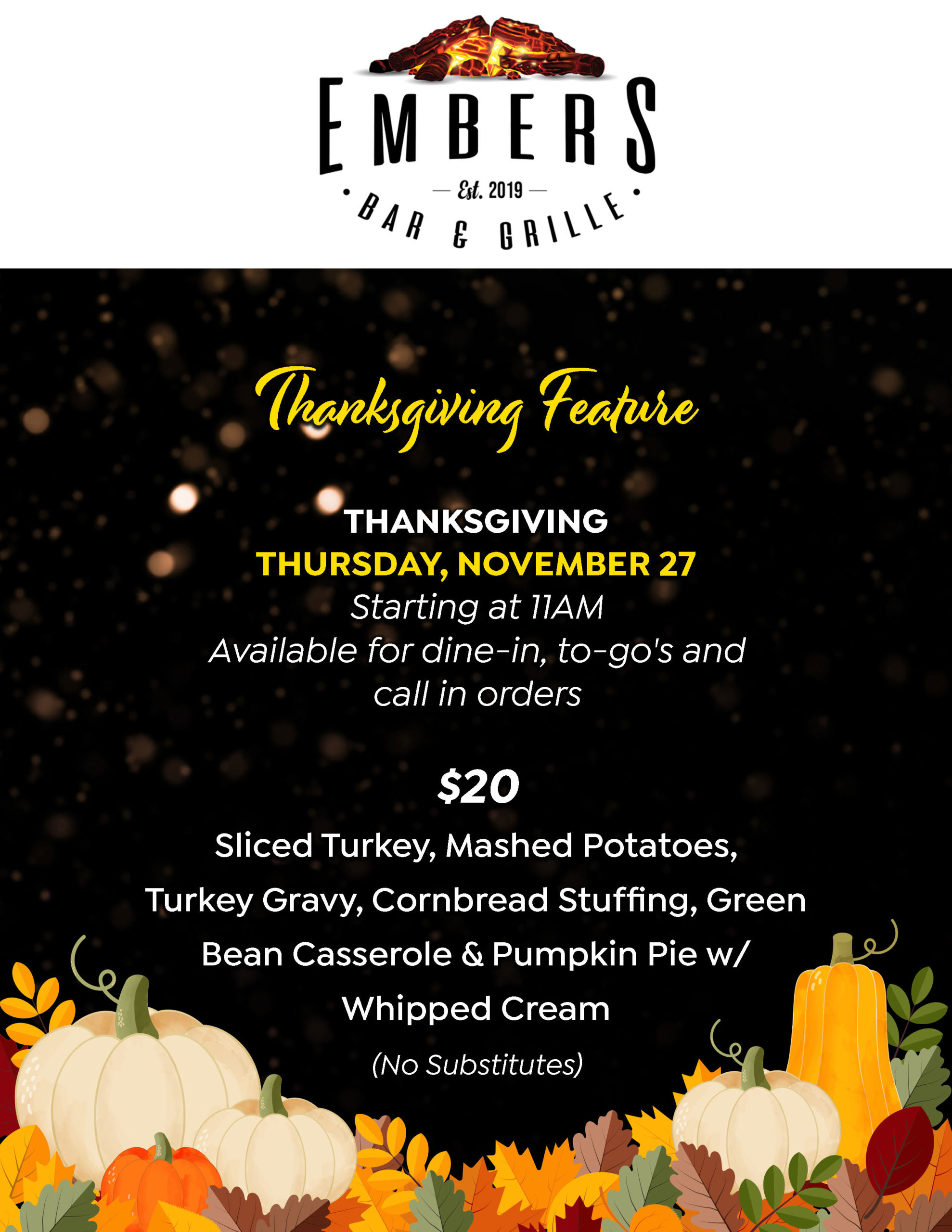 Embers Bar & Grille features high-quality, made to order traditional favorites with a contemporary twist.